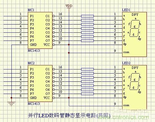 并行LED數碼管靜態顯示電路(共陽)