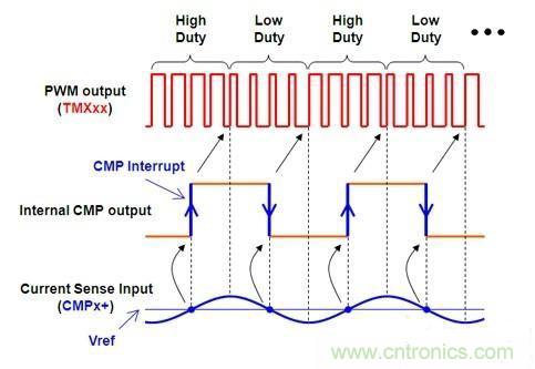 d. 比較器/外部中斷能實現(xiàn)硬件的禁止輸出功能,反應快速,保證安全
