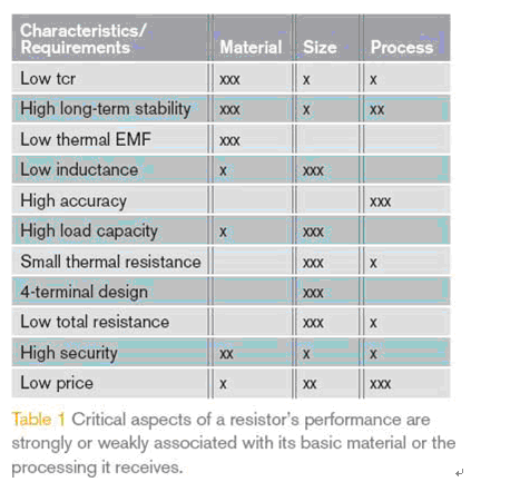 理想的電流檢測電阻應該完全與這些參數無關,當然這樣的電阻是不存在的。實際的電阻特性見表1,包括溫度系數TCR,長期穩定性,熱電動勢,負載能力,電感和線性度,其中的部分特性由材料本身決定;部分特性由元件設計決定,還有一些參數決定于生產制程。