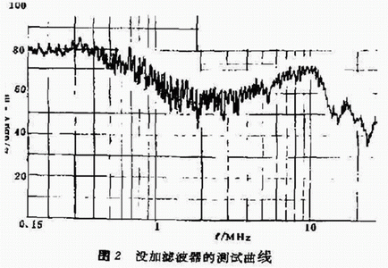 我們知道,架空的輸電線上不可避免地會檢拾到各種高頻輻射干擾,這種干擾往往以共模或差模形式出現,從而在電源線上產生傳導干擾,通過正確的接地,可以抑制這種干擾,但只是在一定程度上的改善,因而可以加濾波器予以抑制(見測試曲線)。