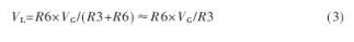 圖3中VF≈1V,施密特比較器的兩個比較點電壓分別為VH和VL,由式(2)和式(3)決定。