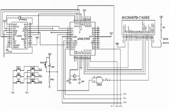 圖4為筆者設(shè)計(jì)的一個(gè)典型應(yīng)用系統(tǒng)的原理圖。圖4為測(cè)量電能并在LCD上顯示的MCU應(yīng)用系統(tǒng)。CPU采用AT89C55WD,最大耗電量為20 mA(若采用STC89C58RD+,則耗電量可降至9 mA左右);LCD選用SO12864,采用COG式,連同背光最大耗電為20mA;功率/電能計(jì)量芯片CS5460的最大耗電量為5 mA,加上復(fù)位、鍵盤(pán)等最大耗電量小于50 mA;繼電器輸出沒(méi)有畫(huà)出,耗電量為12mA。因此,完全可以使用VB409供電,且系統(tǒng)體積小,完全可以放置在LCD背后。