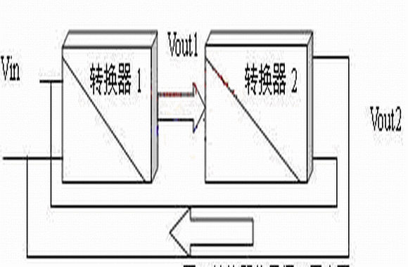 要實現節能循環利用,主要考慮將消耗在電阻負載上的能量更加合理的利用。如果能將輸出電壓Vout再還原為輸入電壓Vin,則輸出電能轉換為輸入的電能,便可以實現電能的循環利用,如圖2所示:將原有轉換器的電阻負載R1用等效輸入阻抗的轉換器2取代,轉換器2的輸出接轉換器1的輸入。則與R1等效輸入阻抗的轉換器2從轉換器1輸出端消耗的能量被轉換到轉換器1的輸入端,再經轉換器1又到轉換器2的輸入端,實現了能量的循環利用。如果在理想情況下,沒有轉換損耗,則系統可以自循環工作。當然這是無法實現的,所以在能量分析時,要引入轉換過程的消耗。