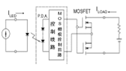 圖1表示FET型半導體繼電器是一種最基本的電路。該電路因輸出元件的功率MOSFET是電壓驅動型元件,因此,由于光電二極管陣列(P.D.A)供給的電壓,而柵極電容被充電,通過使柵極電壓上升到開啟電壓值(門檻電壓),就可使繼電器動作。