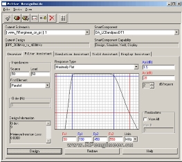 d.在彈出的“Filter DesignGuide”窗口中選擇“Filter Assistant”選項卡,設置濾波器參數,點擊左下角的“Design”按鈕,如圖3所示。