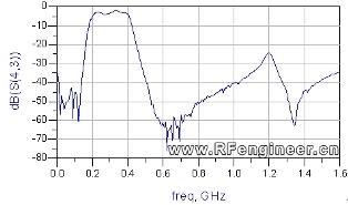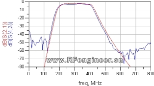 b.通帶: 200MHz-400MHz(插損<5dB)