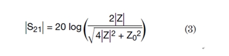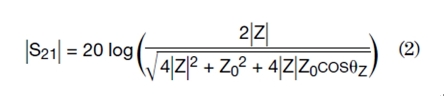 然后,利用ABCD參數(shù)和散射(S)參數(shù)之間的關(guān)系,可以得到插入損耗S21的幅度為: