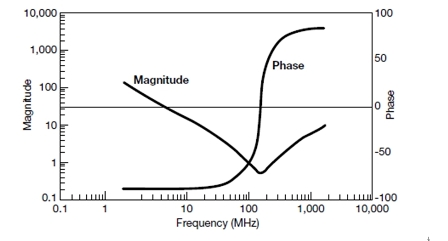 圖2:1000-pF陶瓷電容器的典型阻抗幅相特性。