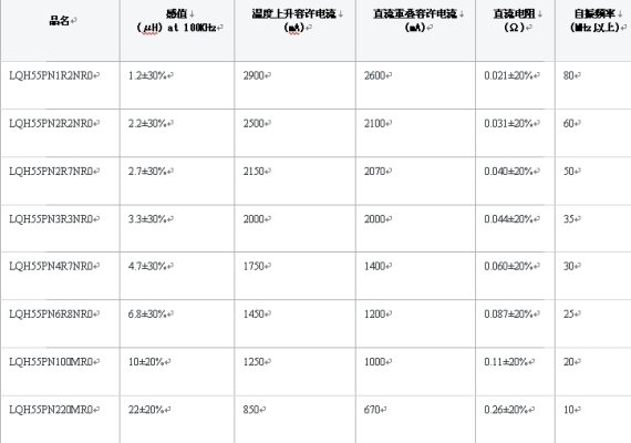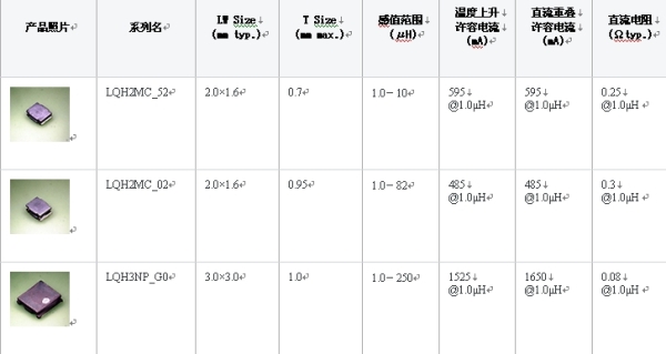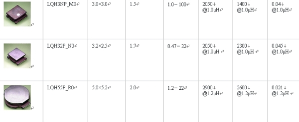 表1:功率電感LQH系列產品線一覽