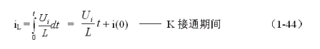 式中負號表示反電動勢eL的極性與(1-43)式相反,即:K接通與關斷時電感的反電動勢的極性正好相反。對(1-46)式進行積分得: