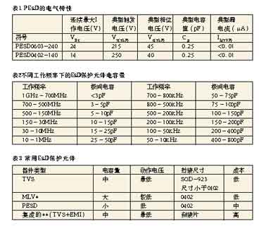 不同工作頻率及要求ESD保護元件的電容量關系如表2所示。常用的ESD保護元件比較如表3所示。[page]