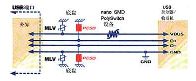 圖6 用PolySwitchTM元件實現(xiàn)過流保護