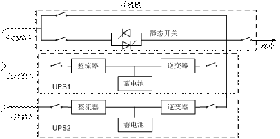 人們期望將多臺UPS組成“n+1”型功率均分冗余模塊化方式整機冗余,類似于開關(guān)電源“n+1”冗余結(jié)構(gòu)即冗余式交流不間斷供電系統(tǒng)(即,冗余式UPS)結(jié)構(gòu)。將每個單臺UPS做為單個獨立的模塊,各自在工作時可以自動均流;單臺出現(xiàn)故障時,可以在不停機的狀態(tài)下“熱插拔”故障UPS模塊;輸出功率在一定范圍內(nèi)可以任意擴容。