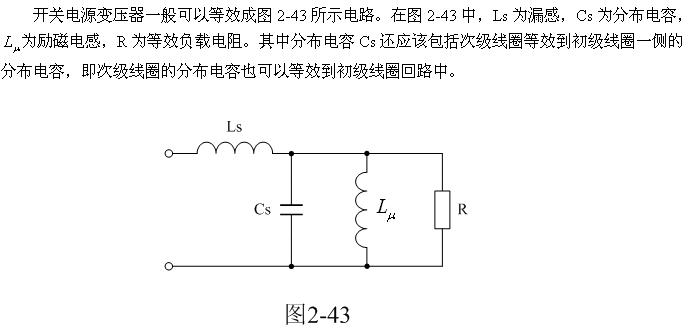 這里順便指出,圖2-45-b的波形是很難測量到的,因為它基本上都在變壓器內部的分布電感Ls與分布電容Cs之間產生,但它會通過輻射對周邊電路造成干擾。