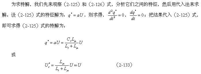 另外,非齊次微分方程(2-125)式的解應該等于齊次微分方程(2-126)式的通解與(2-125)式特解之和。