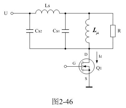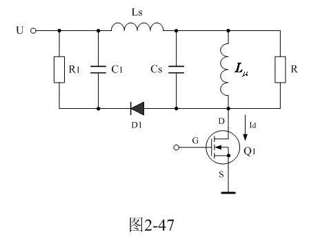 在圖2-46中,Cs1、Cs2都是分布電容,它們對于漏感 來說,既可以產生串聯振蕩,又可以產生并聯振蕩。在電源開關管Q1導通瞬間,漏感與分布電容主要是產生串聯振蕩,因為輸入電壓開始向串聯振蕩回路提供能量;在電源開關管Q1關斷瞬間,漏感與分布電容主要是產生并聯振蕩,因為漏感 必須要通過并聯回路釋放能量。在實際應用中,漏感相對于勵磁電感 來說很小,因此如果不考慮漏感的作用,完全可以把Cs1、Cs2看成是一個分布電容。