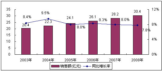 圖1 2003-2008年中國電源市場銷售額增長情況