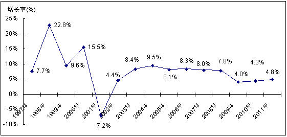 圖8 中國UPS市場1997-2011年市場銷售額增長率及預測