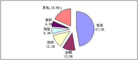 圖10 2008年通信電源應用行業分布情況