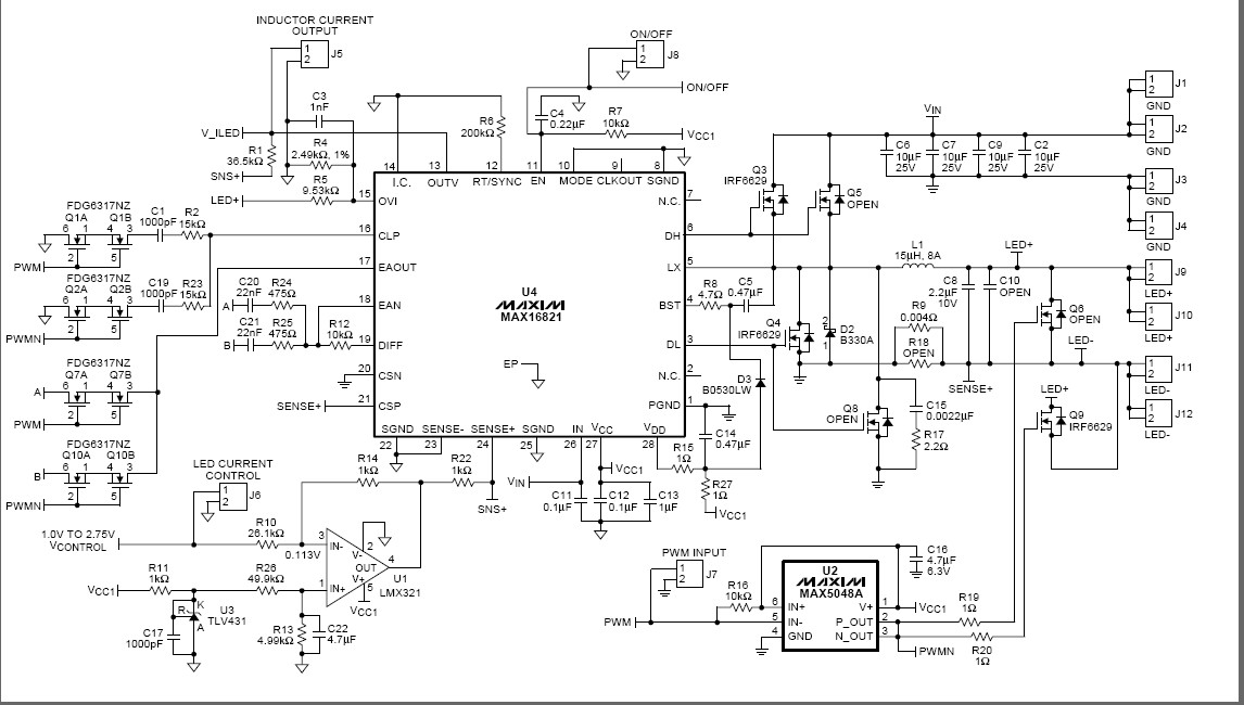 - 使用MAX16821 PWM HB LED驅(qū)動器實(shí)現(xiàn)降壓轉(zhuǎn)換