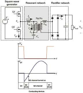 圖4LLC諧振轉換器模塊示意圖和零電壓開關波形