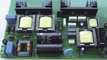 脈寬調制級(PWM)是主要的轉換器級。其中DC電壓被斬波為更高頻率的方波,因此利用更小的變壓器就可以轉換到另一個電壓級并提供隔離。并非所有的拓撲都采用占空比變化的方波,有些拓撲采用的是變頻,還有的則是改變兩個脈沖序列之間的相位。這一級主要確定轉換器的效率和負載調節。轉換器效率十分重要,首先它關系電源的運行成本;其次是必須通過機箱冷卻來散除產生的熱量;第三是熱組件越大,就越昂貴,占用空間也越大。這三個因素與電源的使用壽命成本關系重大。