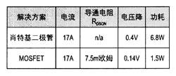 下表比較了在輸出功率為400W(24V,17A)、結溫為100℃時,采用不同整流器獲得的結果: