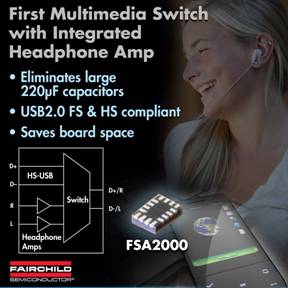 飛兆半導(dǎo)體公司(Fairchild Semiconductor)專注開發(fā)提升用戶滿意度以及使產(chǎn)品取得市場(chǎng)成功的模擬和功率功能,為手機(jī)設(shè)計(jì)人員提供一款集成有無電容耳機(jī)音頻放大器的自動(dòng)選擇高速USB開關(guān)FSA2000,這是業(yè)界首款同類型集成式USB開關(guān)器件,而且能夠減少元件數(shù)量、電路板占用空間并降低材料清單(BOM)成本。