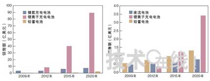 北美的大容量充電電池市場今后有望大幅增長。據估算,2020年面向電動汽車及電車等交通用途的市場規模將擴大至99億美元左右(下圖)。