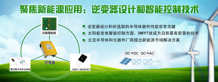 太陽能發(fā)電系統(tǒng)對(duì)半導(dǎo)體器件有什么樣的要求?這篇文章可以告訴大家。A/D轉(zhuǎn)換器、整流器、IGBT模塊、驅(qū)動(dòng)、傳感、MCU以及電容等元器件廠商都有望在新得市場上獲得契機(jī)。這些器件中,最重要的是逆變器,它的任務(wù)是把光伏單元可變的直流電壓輸出轉(zhuǎn)換為清潔的50Hz或60Hz的正弦電壓源,為了保證輸出電壓的穩(wěn)定,需要一系列器件的配合,例如傳感器來跟蹤太陽方位角、A/D轉(zhuǎn)換器來實(shí)現(xiàn)數(shù)據(jù)轉(zhuǎn)換,MCU來實(shí)現(xiàn)穩(wěn)定輸出的算法……那么主流半導(dǎo)體和元器件廠商是如何針對(duì)新能源市場打造解決方案的?我們將業(yè)界的趨勢和熱點(diǎn)作一次總結(jié),希望對(duì)讀者提供一定參考。