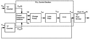 ---其中PLL的部分具有兩個輸入端,分別為參考頻率(Fref)與反饋頻率(Fvco),與一個輸出端(Fout)。三者之間關系可以公式表示如下。
