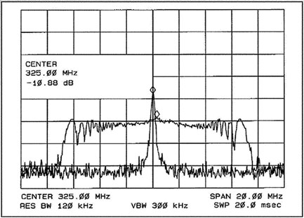 ---利用時鐘發生器中PLL的特性,以圖2所示的Lexmark曲線,以系統時鐘為中心作小幅度的調變,將可使EMI的能量平均散布在一小段的頻譜范圍中,以降低單一頻率EMI的峰值,如圖3所示。