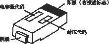 該電容器的外形如圖2所示,其外形及底面尺寸與某些鉭電解電容器相同。頂面有橫道的一端為陽極,頂面上有電容容量代碼及耐壓代碼。容量代碼的第一位、第二位表示電容量的基數,第三位表示幾個零,例如220表示22μF,101表示100μF。有的在第二位用R,則R表示小數點,如4R7表示4.7μF。耐壓代碼為,D=2V,G=4V,J=6.3V,K=8V、B=12.5V、C=16V。