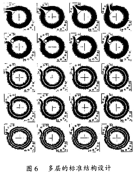 在雙面PCB板的每一層都是由一到多匝的繞組組成的,而且所有的層都保持著一樣的物理特性:即相同的形狀和相同的外部連接點。在有些多匝的層次中,這個外部連接點是不同匝數(shù)間的電氣連接點。如果有些層只有一匝,它也可以被印制在PCB的雙面來降低交流阻抗。使用銅箔直接印制在PCB板上來替代傳統(tǒng)的導(dǎo)線,即使在許多需要很多匝數(shù)的開關(guān)電源中,變壓器依舊能保持一個很小的體積,這便大大減小了整機的體積。具體的設(shè)計步奏和注意事項請參閱文獻[3]。圖6顯示了一個頂層的標準匝數(shù)設(shè)計的例子,它使用的是罐形(RM)磁芯。