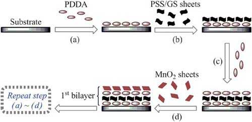 圖2 :PSS-GS與二氧化錳在基底上的層層自組裝示意圖