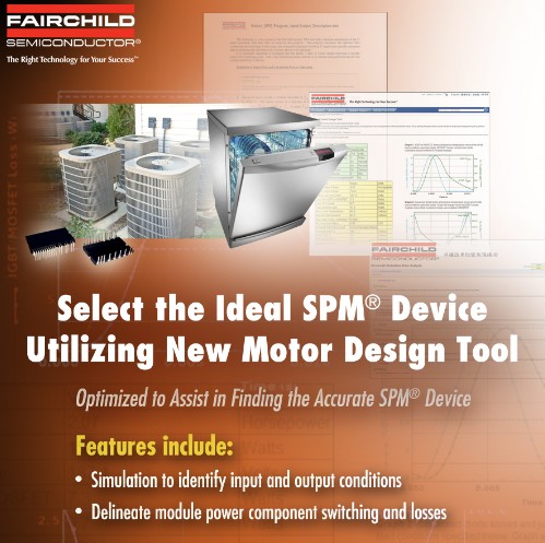 飛兆半導體提供完整的SPM封裝產品系列,推動高能效變頻馬達的發展,并實現高能效的設計。運動控制設計工具 可以配合和支持SPM系列的所有器件,為運動控制設計工程師提供飛兆半導體MotiON-SPM封裝的功耗和溫升的有效計算方法。