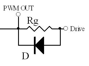 一般IC的PWM OUT輸出內(nèi)部集成了限流電阻,具體數(shù)值大小同IC的峰值驅(qū)動(dòng)輸出能力有關(guān),可以近似認(rèn)為R=Vcc/Ipeak.一般結(jié)合IC驅(qū)動(dòng)能力 Rg選擇在10-20Ω左右.