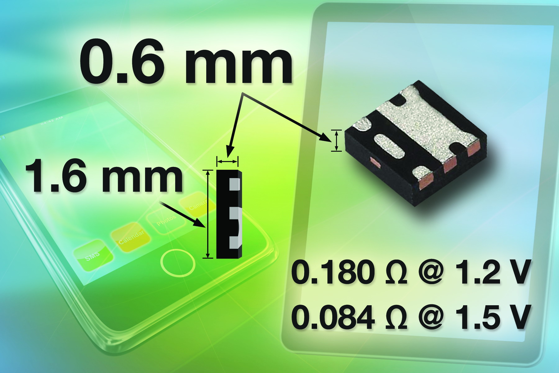 MOSFET可在1.5V和1.2V電壓下導(dǎo)通,能夠搭配手持設(shè)備中常見的更低電壓的柵極驅(qū)動和更低的總線電壓,從而省去了電平轉(zhuǎn)換電路的空間和成本。在手持設(shè)備中電池電量較低,并且要求消耗盡可能少的能量時,這種MOSFET尤其有用。