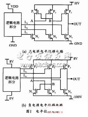 在柵驅動電路中需要電平位移電路來實現從低壓控制輸入到高壓驅動輸出的電平轉換。而在一些領域如SOC中的待機模式激活、ESD保護等需要能工作在負電源的電平位移電路。