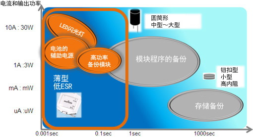 - 內阻僅為數mΩ的低ESR (等效串聯電阻) 蓄電裝置