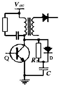 4) 無源回饋開通緩沖電路(圖5) :此電路通過變壓器將磁場貯能回饋到電源。變壓器為雙線繞制,其原邊具有一定電感;幅邊的極性與原邊相反,并且接有反向二極管。管子開通時,原邊承受全部電源電壓,副邊無通電回路。管子關斷時,副邊感應電壓極性換向,當其電壓高于電源電壓Vcc 時, 向電源饋送能量。