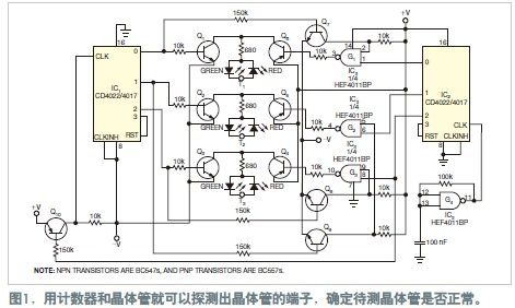 了解這點以后,就能輕松地選擇出晶體管的基極。至于集電極與射極的區別,必須了解其特性,即在反偏時,基-射結的擊穿要比基-集電極結更容易,后者在正常工作情況下是反偏的。