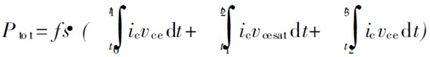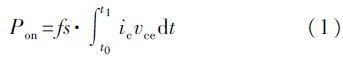 在晶體管導通后, 集電極電流從0逐漸變大, 而Vcesat不為0, 因此產生通態損耗。通態損耗可以表示為: