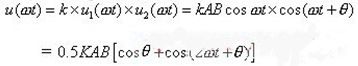 K為模擬乘法器的放大系數(shù)。進(jìn)行低通濾波后濾掉交流成分得: