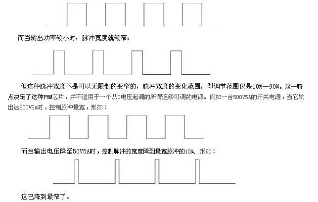 但所謂PWM芯片,是一種脈寬調制器,當輸出電壓較高,輸出電流較大時,電源內部的開關管開通時間較長而關斷時間較短: