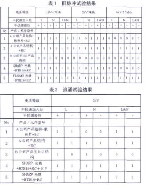 (5) 對于不同的組合,將有不同的EMC 能力。如果用EMC 較好的光耦配較差的可控硅,將造成較差的E M C抗擾能力。反之可得出同樣結果;