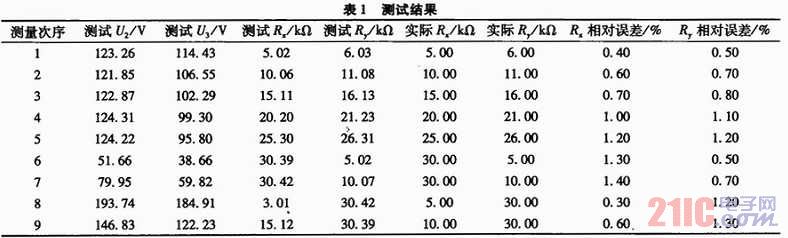 由1~5組可知,當(dāng)絕緣電阻大時(shí),測試相對誤差略有增大,這是因?yàn)椴蓸覣/D的輸入阻抗較小,因此當(dāng)測試電阻較大時(shí)造成誤差相對大些。另外,當(dāng)負(fù)母線的絕緣電阻<30 kΩ、負(fù)母線絕緣電阻正常時(shí),前者的測量效果差些。因?yàn)榇藭r(shí)實(shí)際測得的電壓U2和U3都較小,A/D采樣的相對誤差大一些,所以電阻的誤差也大一些。不過遠(yuǎn)好于平衡橋法無法發(fā)現(xiàn)兩點(diǎn)接地的情況,可以正卻發(fā)現(xiàn)接地。絕緣檢測的環(huán)境下,只要絕緣電阻>20 kΩ即認(rèn)為絕緣良好,因此對于絕緣檢測的應(yīng)用環(huán)境,本系統(tǒng)能夠比較精確的測試各路的絕緣電阻,完全滿足應(yīng)用環(huán)境的需要。