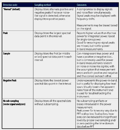 檢測模式是另一種幅度控制方式,可用于傳統的掃描頻譜分析儀,但不能用于基于FFT的分析儀。可分為普通、峰值、采樣或負峰值等模式,具體檢測模式決定了頻譜分析儀如何減少頻譜信息的,或者說如何壓縮頻譜信息。