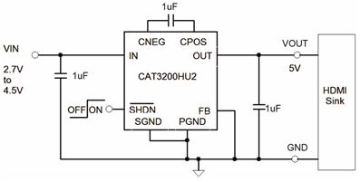 圖3:適合HDMI端口供電的CAT3200HU2低噪聲電源IC。