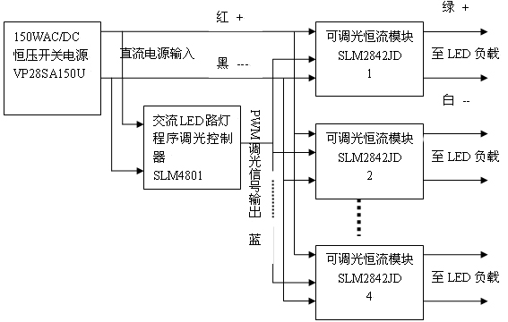 而且這種恒壓和恒流分開的方案的最大優點是可以插入程序調光系統。這樣可以進一步節約電能40%以上,這是任何直接恒流輸出方案所無法實現的。